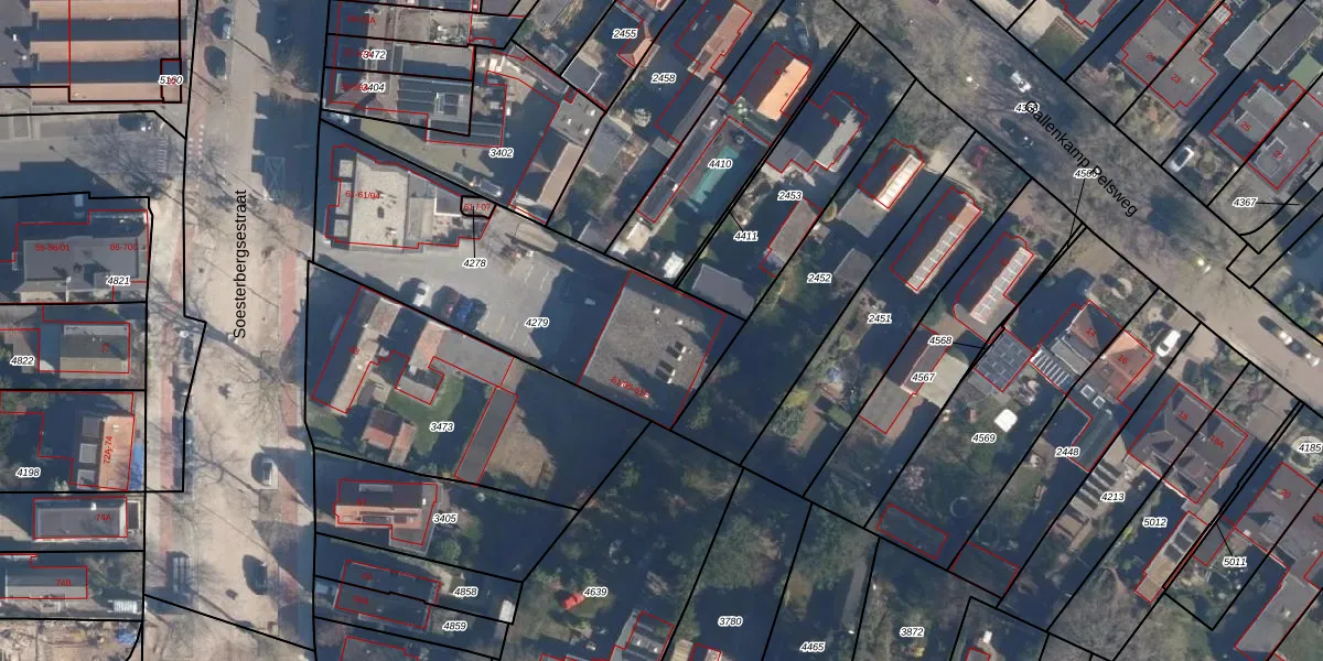 Soesterbergsestraat 61-B is gelegen op kadastraal perceel SOE00C4279. Deze kadastrale aanduiding is uniek en wordt gebruikt door het Kadaster om eigendomsrechten en andere zakelijke rechten vast te leggen. Het perceel maakt onderdeel uit van de kadastrale gemeente Soest.