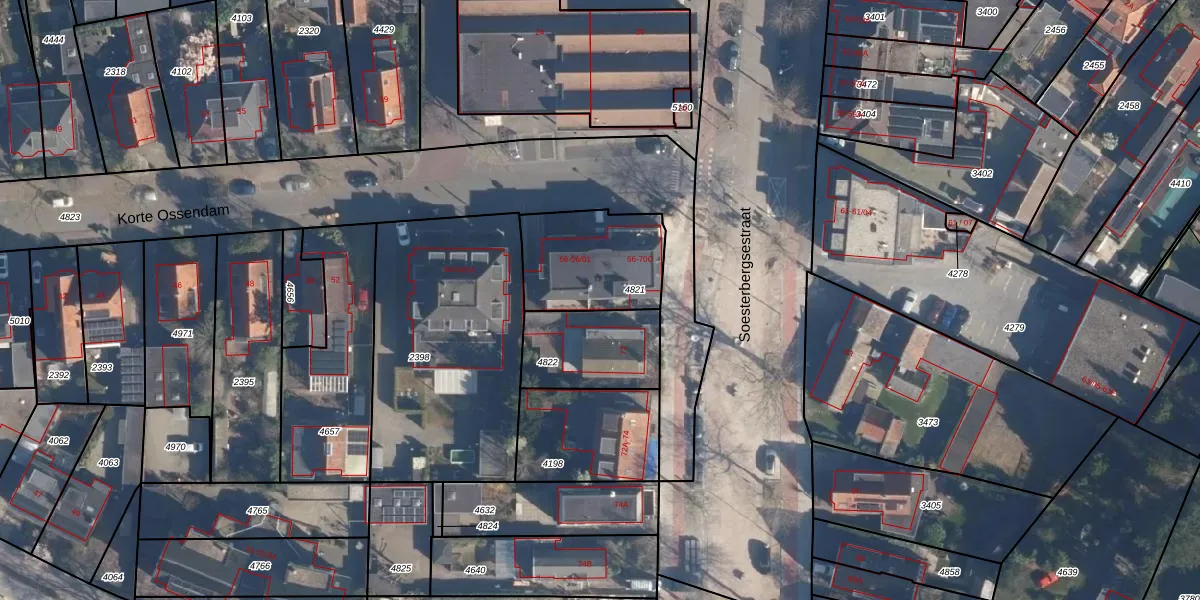 Soesterbergsestraat 66 is gelegen op kadastraal perceel SOE00D4821. Deze kadastrale aanduiding is uniek en wordt gebruikt door het Kadaster om eigendomsrechten en andere zakelijke rechten vast te leggen. Het perceel maakt onderdeel uit van de kadastrale gemeente Soest.