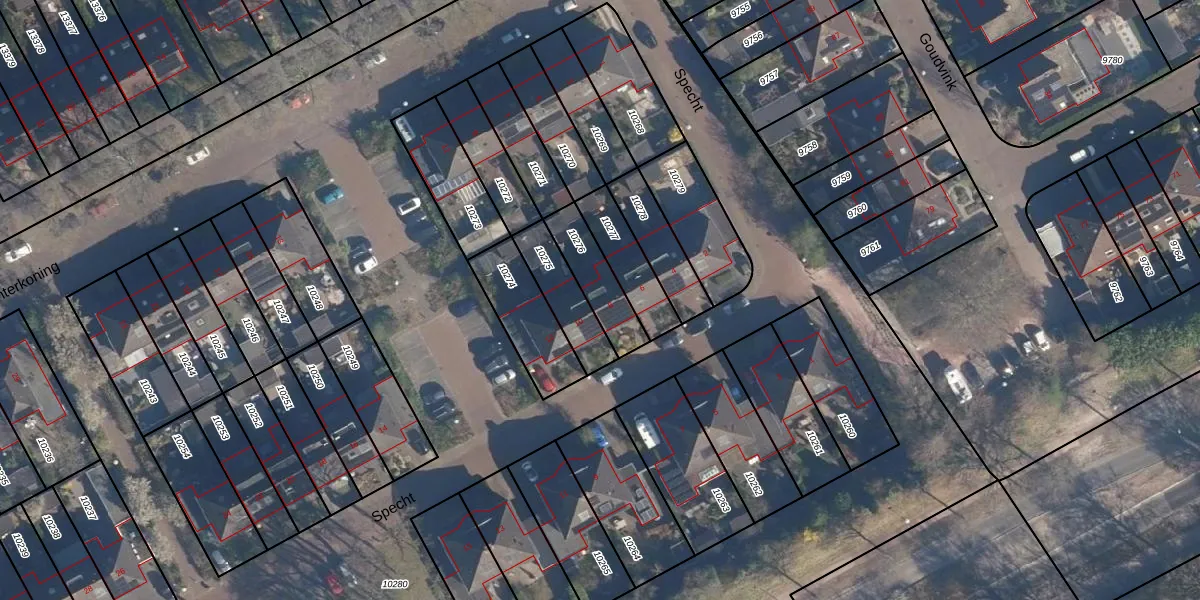 Het perceel waarop Specht 8 staat heeft een oppervlakte van 159 m². Dit is een middelgroot perceel. De perceeloppervlakte wordt geregistreerd door het Kadaster. Gedetailleerde informatie over de maten van dit perceel kunt u vinden in het rapport Kadastrale kaart met maatvoering van Specht 8.