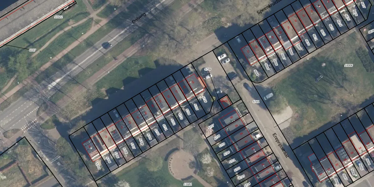 Gebruik de zoekbalk of klik op een perceel voor informatie over de adressen binnen dit perceel.
