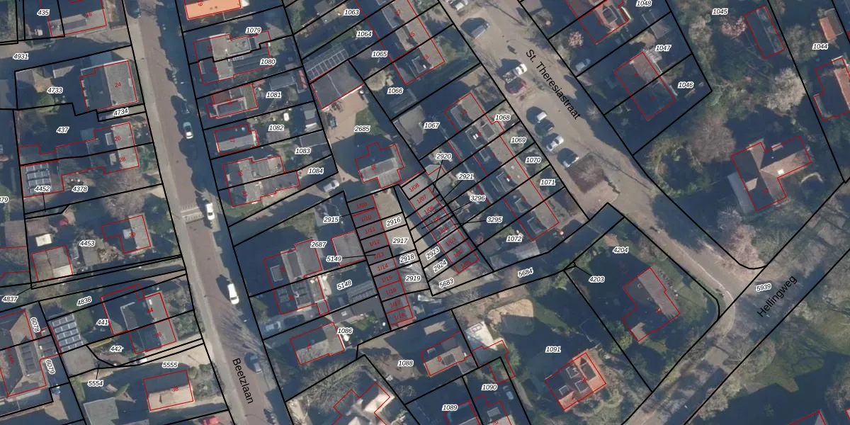 Het perceel waarop St. Theresiastraat 1-06 staat heeft een oppervlakte van 33 m². Dit is een klein perceel. De perceeloppervlakte wordt geregistreerd door het Kadaster. Gedetailleerde informatie over de maten van dit perceel kunt u vinden in het rapport Kadastrale kaart met maatvoering van St. Theresiastraat 1-06.