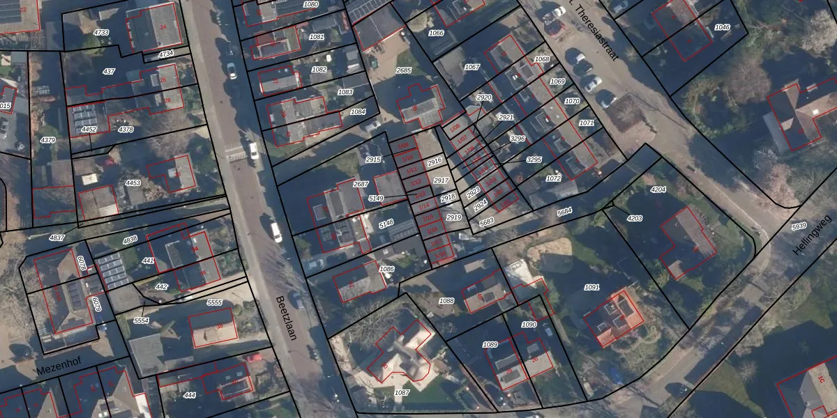 St. Theresiastraat 1-14 is gelegen op kadastraal perceel SOE00K2918. Deze kadastrale aanduiding is uniek en wordt gebruikt door het Kadaster om eigendomsrechten en andere zakelijke rechten vast te leggen. Het perceel maakt onderdeel uit van de kadastrale gemeente Soest.
