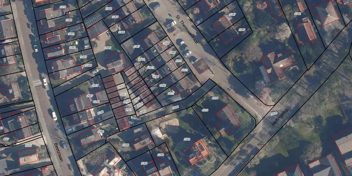 St. Theresiastraat 1 is gelegen op kadastraal perceel SOE00K1072. Deze kadastrale aanduiding is uniek en wordt gebruikt door het Kadaster om eigendomsrechten en andere zakelijke rechten vast te leggen. Het perceel maakt onderdeel uit van de kadastrale gemeente Soest.
