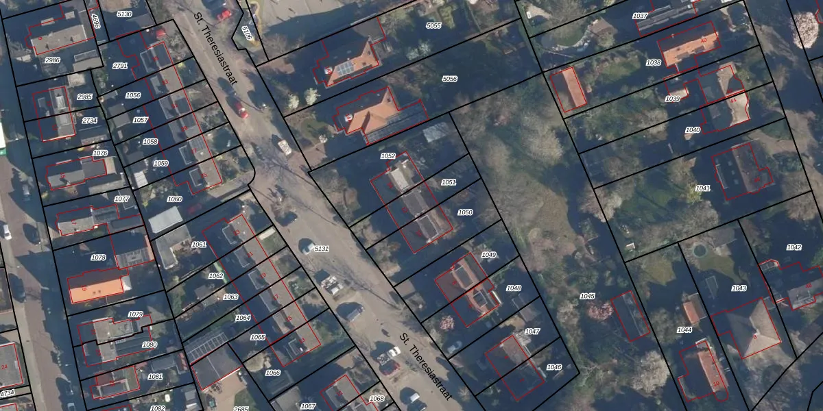 St. Theresiastraat 12 is gelegen op kadastraal perceel SOE00K1051. Deze kadastrale aanduiding is uniek en wordt gebruikt door het Kadaster om eigendomsrechten en andere zakelijke rechten vast te leggen. Het perceel maakt onderdeel uit van de kadastrale gemeente Soest.