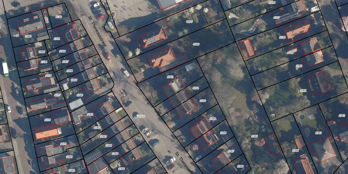 St. Theresiastraat 14 is gelegen op kadastraal perceel SOE00K1052. Deze kadastrale aanduiding is uniek en wordt gebruikt door het Kadaster om eigendomsrechten en andere zakelijke rechten vast te leggen. Het perceel maakt onderdeel uit van de kadastrale gemeente Soest.