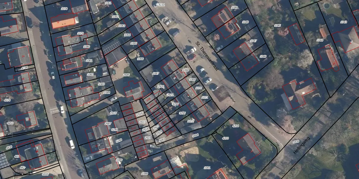 St. Theresiastraat 7 is gelegen op kadastraal perceel SOE00K1069. Deze kadastrale aanduiding is uniek en wordt gebruikt door het Kadaster om eigendomsrechten en andere zakelijke rechten vast te leggen. Het perceel maakt onderdeel uit van de kadastrale gemeente Soest.