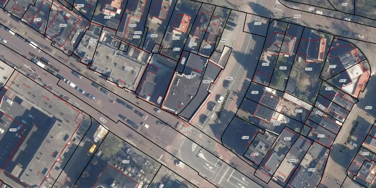 Het perceel waarop Stadhouderslaan 1-01 staat heeft een oppervlakte van 436 m². Dit is een groot perceel. De perceeloppervlakte wordt geregistreerd door het Kadaster. Gedetailleerde informatie over de maten van dit perceel kunt u vinden in het rapport Kadastrale kaart met maatvoering van Stadhouderslaan 1-01.