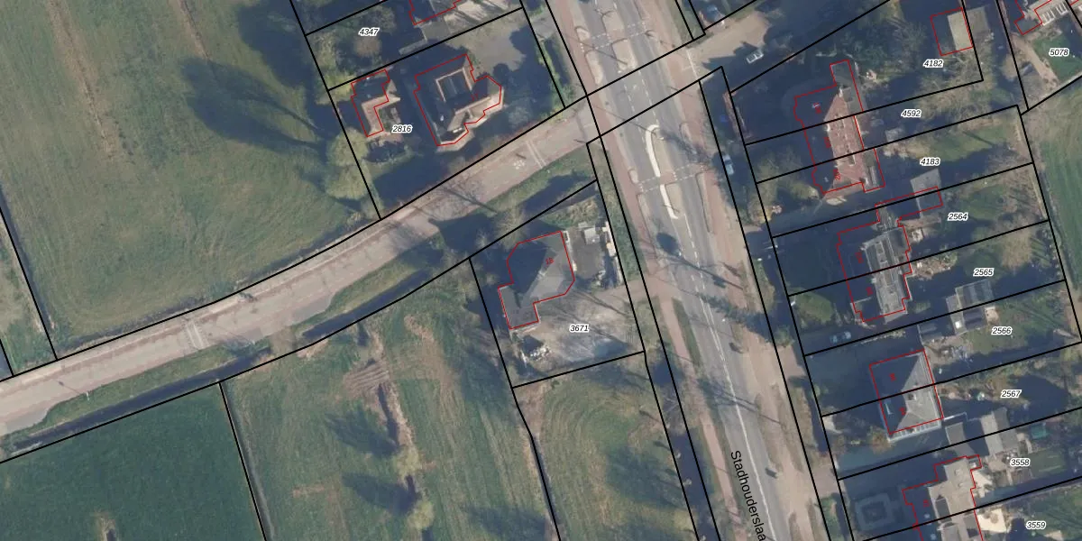 Stadhouderslaan 15 is gelegen op kadastraal perceel SOE00A3671. Deze kadastrale aanduiding is uniek en wordt gebruikt door het Kadaster om eigendomsrechten en andere zakelijke rechten vast te leggen. Het perceel maakt onderdeel uit van de kadastrale gemeente Soest.