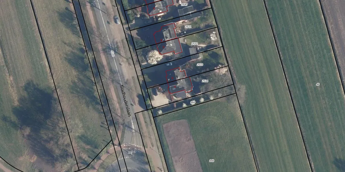 Stadhouderslaan 22 is gelegen op kadastraal perceel SOE00A2534. Deze kadastrale aanduiding is uniek en wordt gebruikt door het Kadaster om eigendomsrechten en andere zakelijke rechten vast te leggen. Het perceel maakt onderdeel uit van de kadastrale gemeente Soest.