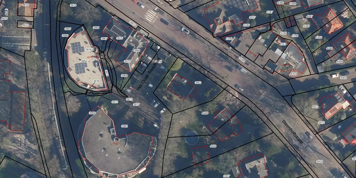 Gebruik de zoekbalk of klik op een perceel voor informatie over de adressen binnen dit perceel.