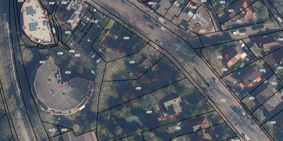 Gebruik de zoekbalk of klik op een perceel voor informatie over de adressen binnen dit perceel.