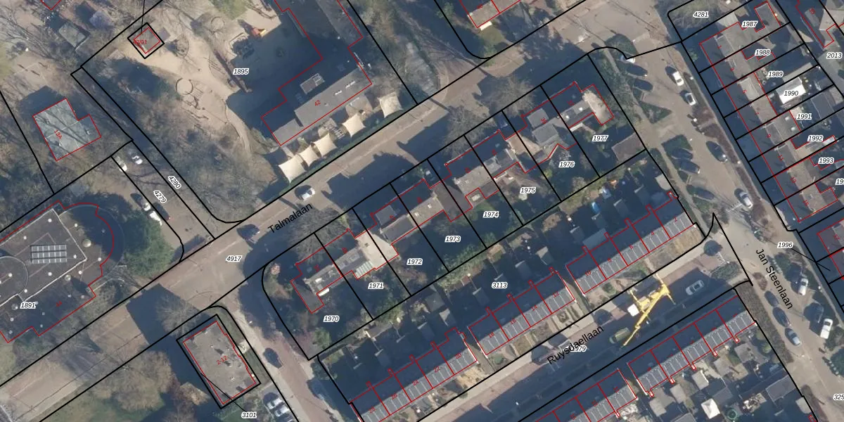 Het perceel waarop Talmalaan 45 staat heeft een oppervlakte van 272 m². Dit is een middelgroot perceel. De perceeloppervlakte wordt geregistreerd door het Kadaster. Gedetailleerde informatie over de maten van dit perceel kunt u vinden in het rapport Kadastrale kaart met maatvoering van Talmalaan 45.