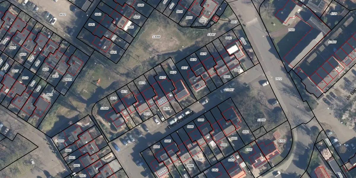 Theo Dobbehof 14 is gelegen op kadastraal perceel SOE00G6676. Deze kadastrale aanduiding is uniek en wordt gebruikt door het Kadaster om eigendomsrechten en andere zakelijke rechten vast te leggen. Het perceel maakt onderdeel uit van de kadastrale gemeente Soest.