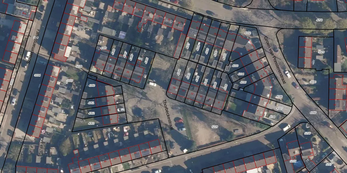 Thorbeckestraat 16 is gelegen op kadastraal perceel SOE00K4344. Deze kadastrale aanduiding is uniek en wordt gebruikt door het Kadaster om eigendomsrechten en andere zakelijke rechten vast te leggen. Het perceel maakt onderdeel uit van de kadastrale gemeente Soest.
