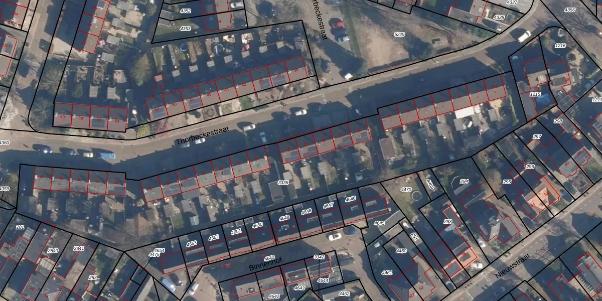 Het perceel waarop Thorbeckestraat 21 staat heeft een oppervlakte van 3810 m². Dit is een zeer groot perceel. De perceeloppervlakte wordt geregistreerd door het Kadaster. Gedetailleerde informatie over de maten van dit perceel kunt u vinden in het rapport Kadastrale kaart met maatvoering van Thorbeckestraat 21.