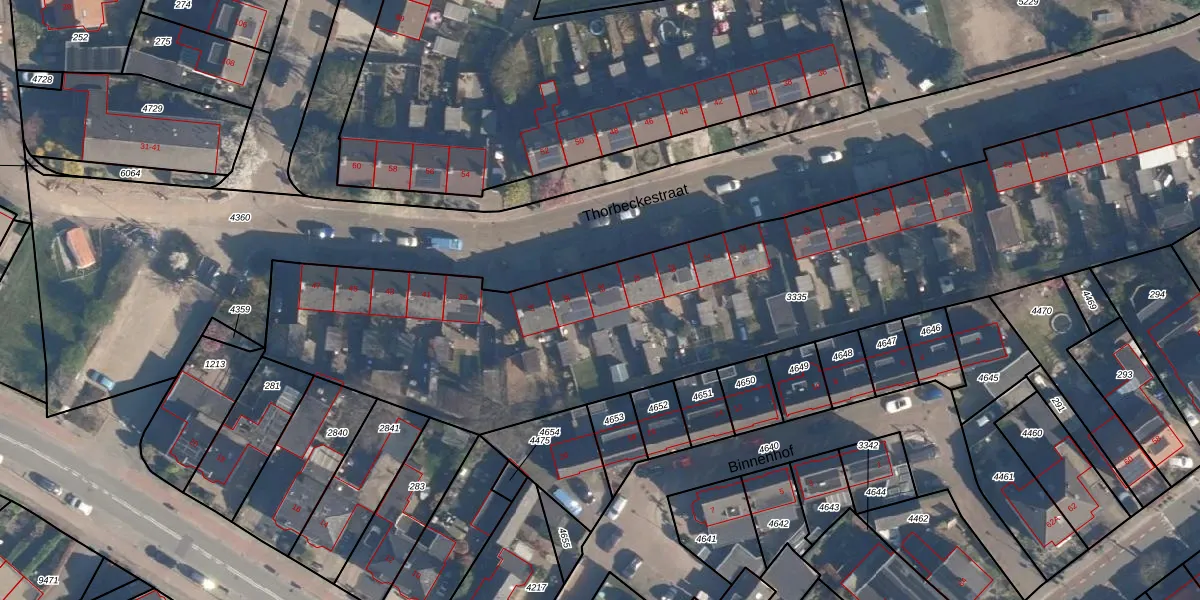 Het perceel waarop Thorbeckestraat 33 staat heeft een oppervlakte van 3810 m². Dit is een zeer groot perceel. De perceeloppervlakte wordt geregistreerd door het Kadaster. Gedetailleerde informatie over de maten van dit perceel kunt u vinden in het rapport Kadastrale kaart met maatvoering van Thorbeckestraat 33.