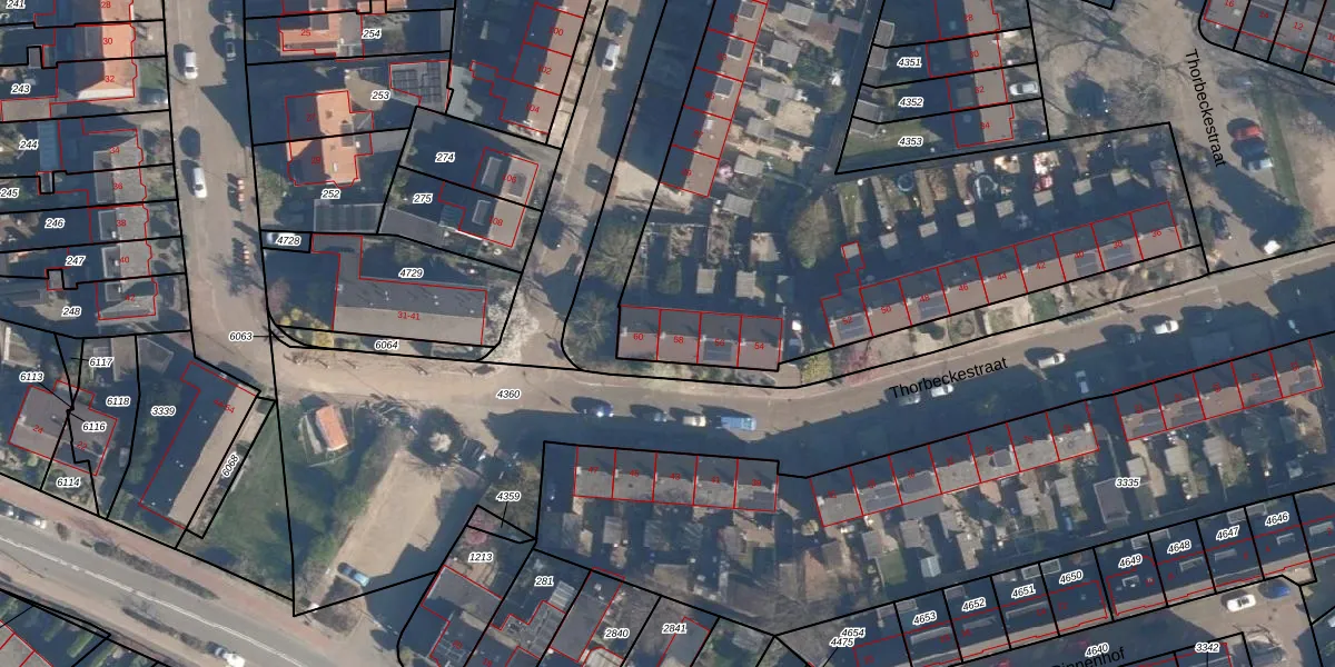 Het perceel waarop Thorbeckestraat 58 staat heeft een oppervlakte van 5305 m². Dit is een zeer groot perceel. De perceeloppervlakte wordt geregistreerd door het Kadaster. Gedetailleerde informatie over de maten van dit perceel kunt u vinden in het rapport Kadastrale kaart met maatvoering van Thorbeckestraat 58.