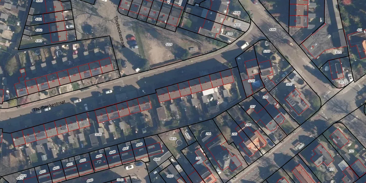 Het perceel waarop Thorbeckestraat 9 staat heeft een oppervlakte van 3810 m². Dit is een zeer groot perceel. De perceeloppervlakte wordt geregistreerd door het Kadaster. Gedetailleerde informatie over de maten van dit perceel kunt u vinden in het rapport Kadastrale kaart met maatvoering van Thorbeckestraat 9.
