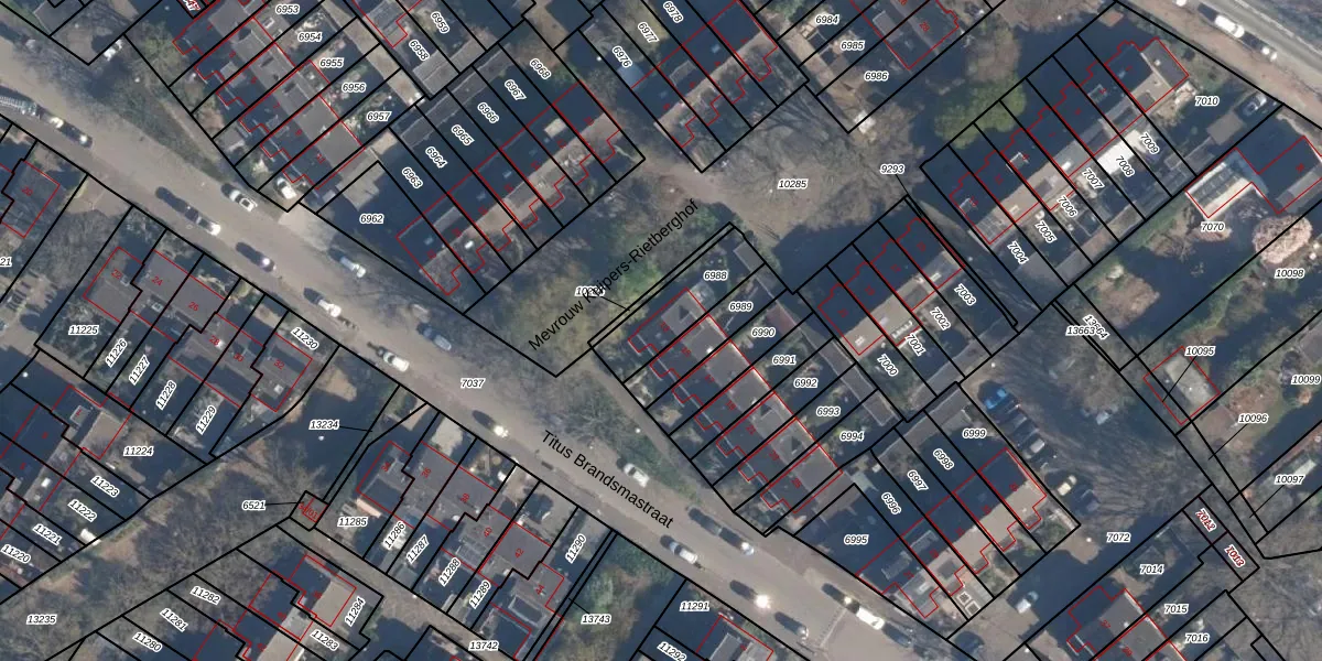 Titus Brandsmastraat 13 is gelegen op kadastraal perceel SOE00G6988. Deze kadastrale aanduiding is uniek en wordt gebruikt door het Kadaster om eigendomsrechten en andere zakelijke rechten vast te leggen. Het perceel maakt onderdeel uit van de kadastrale gemeente Soest.