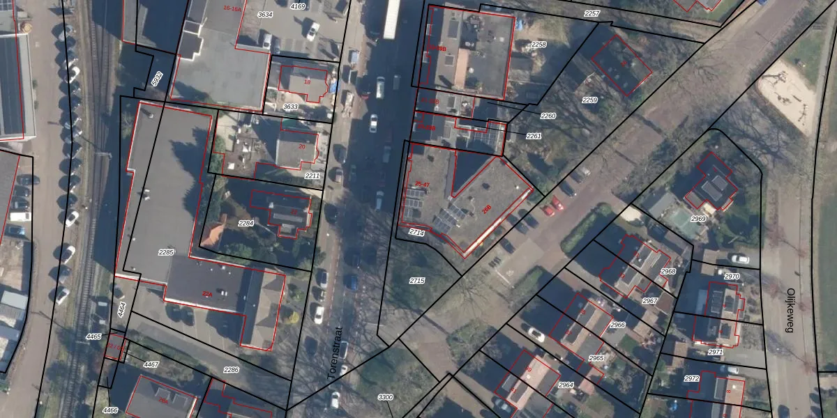 Het perceel waarop Torenstraat 27 staat heeft een oppervlakte van 708 m². Dit is een groot perceel. De perceeloppervlakte wordt geregistreerd door het Kadaster. Gedetailleerde informatie over de maten van dit perceel kunt u vinden in het rapport Kadastrale kaart met maatvoering van Torenstraat 27.