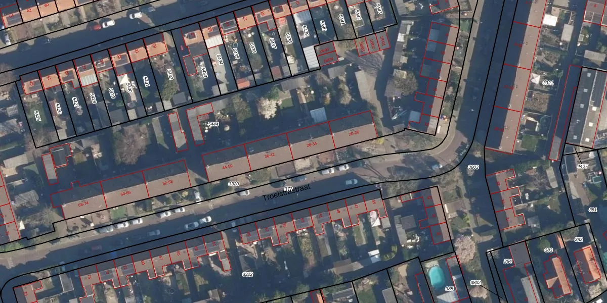 Troelstrastraat 30 is gelegen op kadastraal perceel SOE00K5444. Deze kadastrale aanduiding is uniek en wordt gebruikt door het Kadaster om eigendomsrechten en andere zakelijke rechten vast te leggen. Het perceel maakt onderdeel uit van de kadastrale gemeente Soest.
