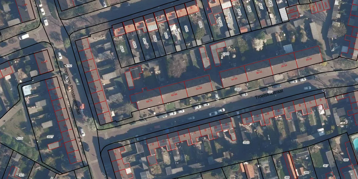 Troelstrastraat 64 is gelegen op kadastraal perceel SOE00K5444. Deze kadastrale aanduiding is uniek en wordt gebruikt door het Kadaster om eigendomsrechten en andere zakelijke rechten vast te leggen. Het perceel maakt onderdeel uit van de kadastrale gemeente Soest.