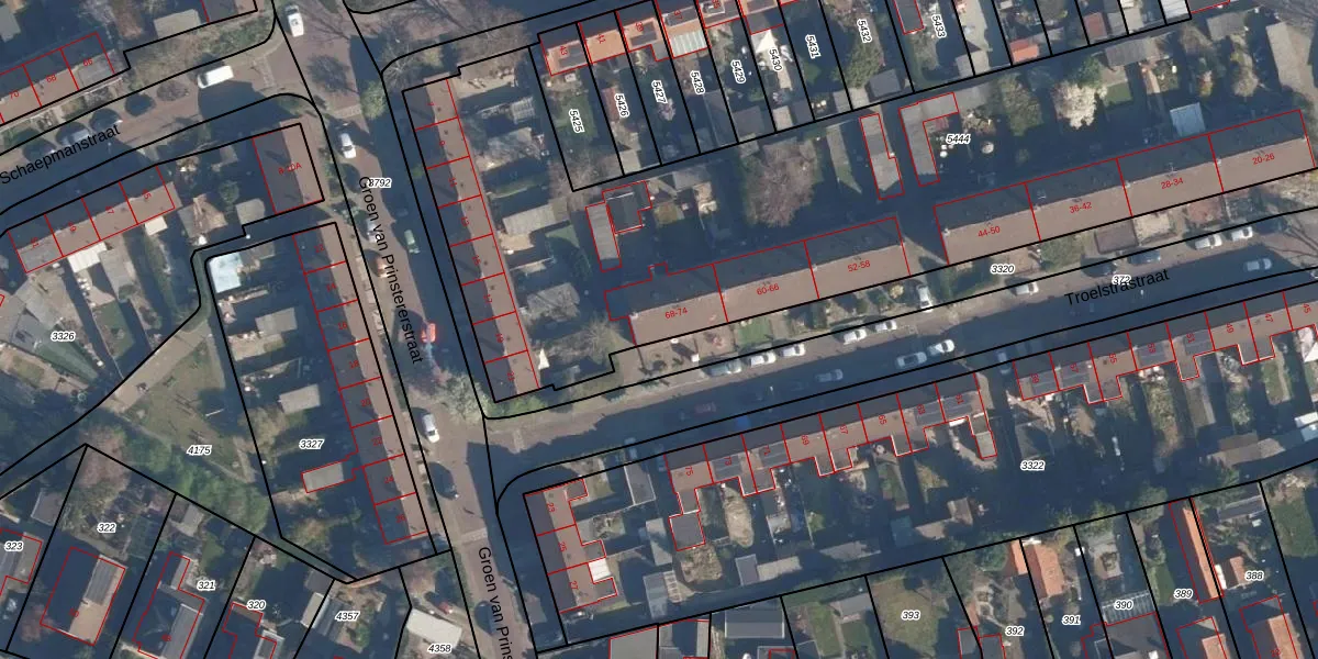 Troelstrastraat 70 is gelegen op kadastraal perceel SOE00K5444. Deze kadastrale aanduiding is uniek en wordt gebruikt door het Kadaster om eigendomsrechten en andere zakelijke rechten vast te leggen. Het perceel maakt onderdeel uit van de kadastrale gemeente Soest.