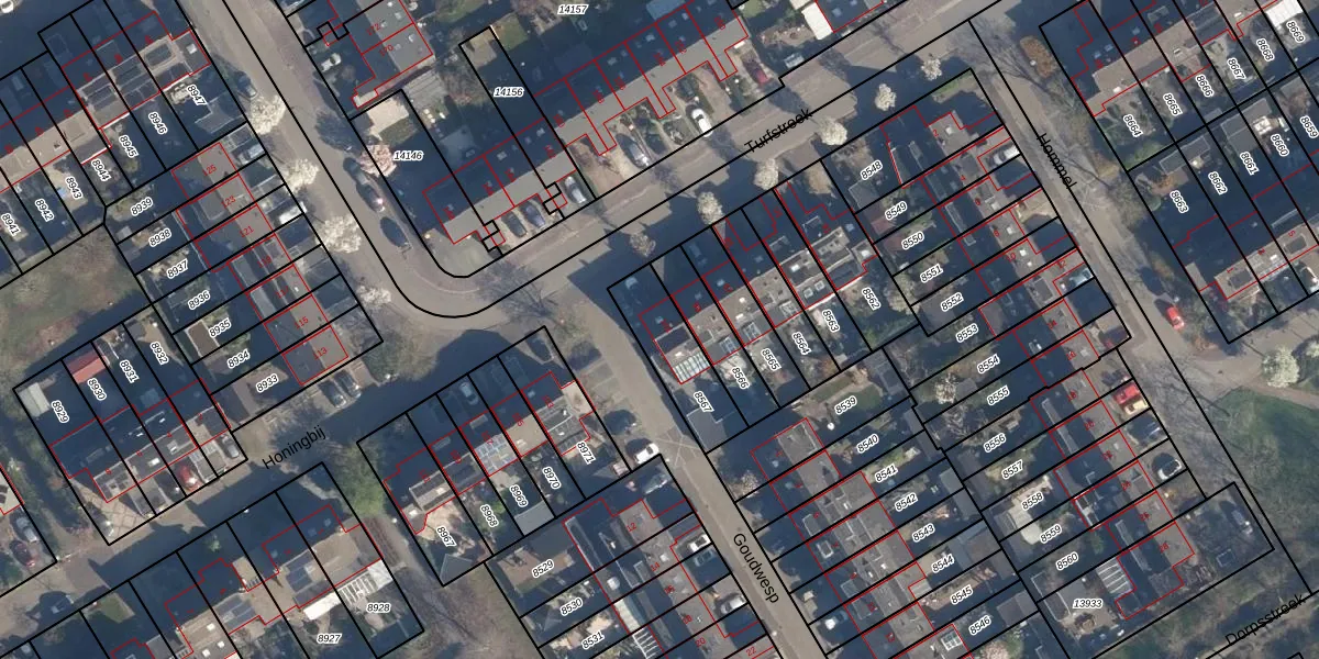 Gebruik de zoekbalk of klik op een perceel voor informatie over de adressen binnen dit perceel.