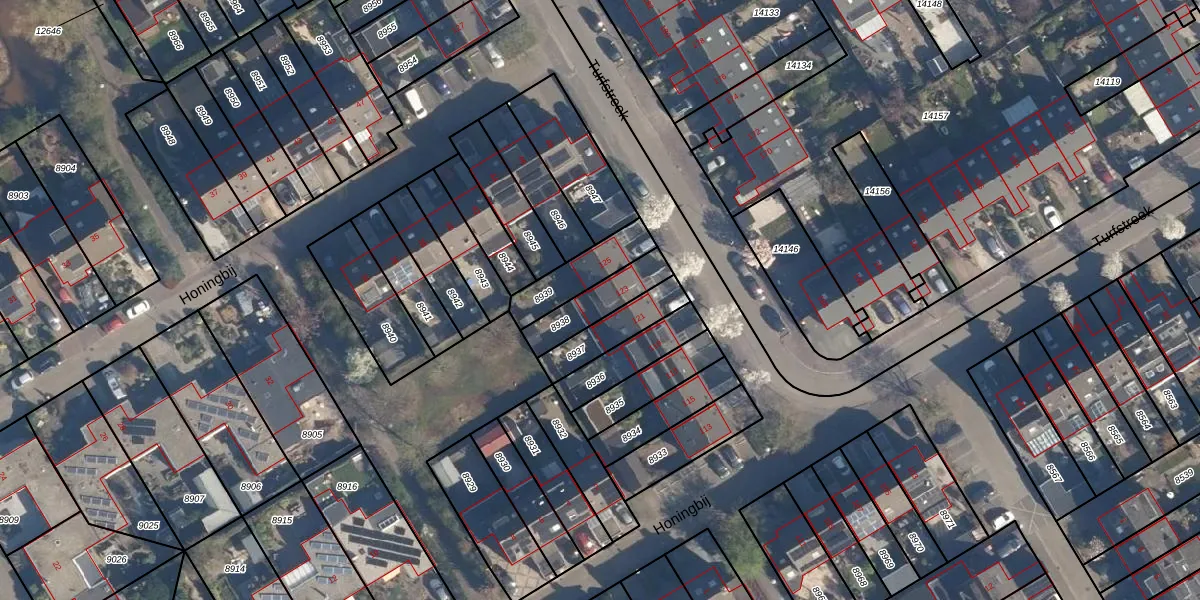 Gebruik de zoekbalk of klik op een perceel voor informatie over de adressen binnen dit perceel.