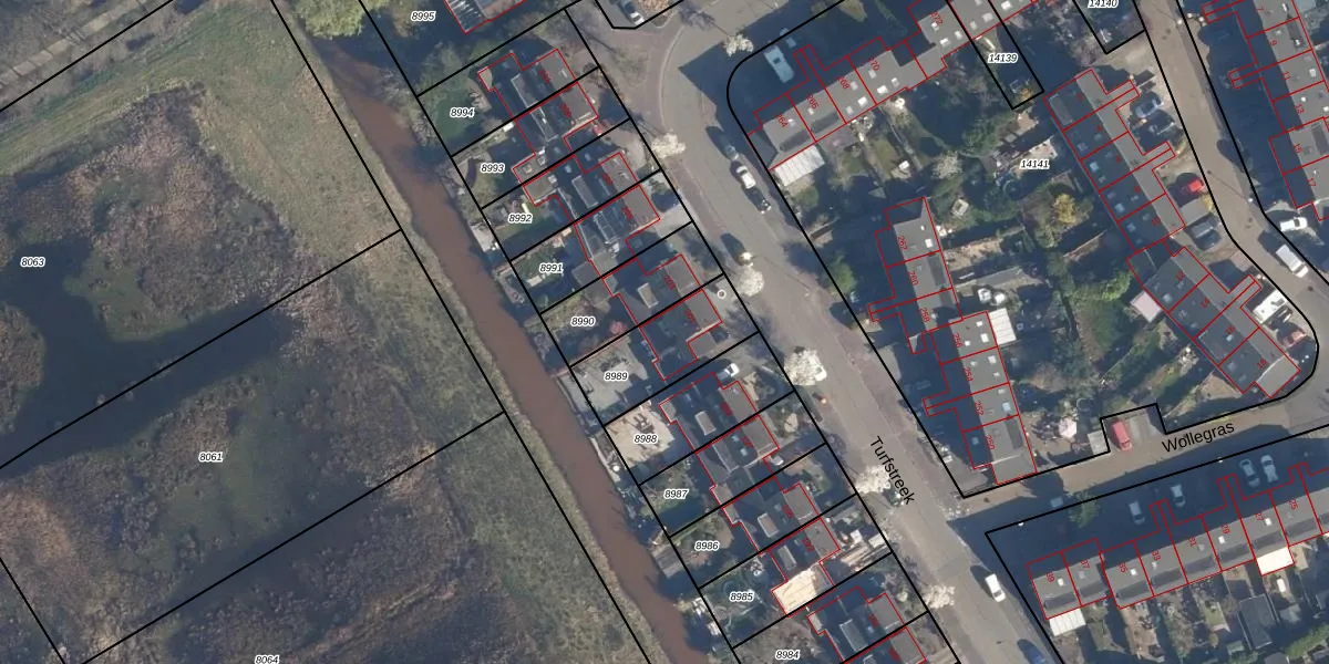 Gebruik de zoekbalk of klik op een perceel voor informatie over de adressen binnen dit perceel.