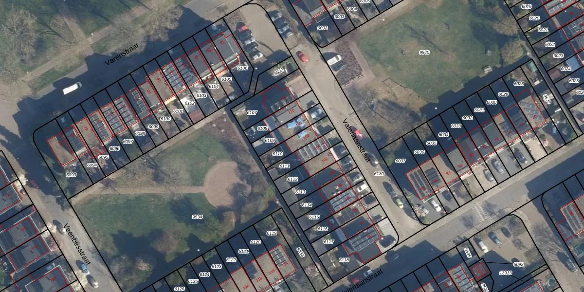 Valeriaanstraat 106 is gelegen op kadastraal perceel SOE00G6110. Deze kadastrale aanduiding is uniek en wordt gebruikt door het Kadaster om eigendomsrechten en andere zakelijke rechten vast te leggen. Het perceel maakt onderdeel uit van de kadastrale gemeente Soest.