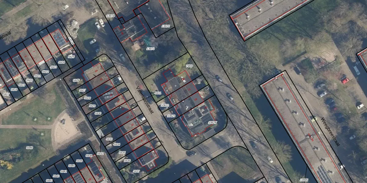 Gebruik de zoekbalk of klik op een perceel voor informatie over de adressen binnen dit perceel.