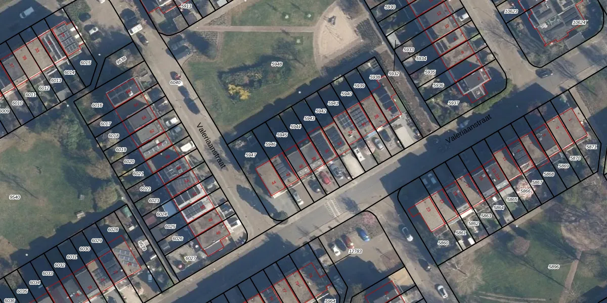 Het perceel waarop Valeriaanstraat 38 staat heeft een oppervlakte van 155 m². Dit is een middelgroot perceel. De perceeloppervlakte wordt geregistreerd door het Kadaster. Gedetailleerde informatie over de maten van dit perceel kunt u vinden in het rapport Kadastrale kaart met maatvoering van Valeriaanstraat 38.
