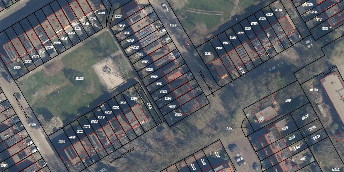 Valeriaanstraat 45 is gelegen op kadastraal perceel SOE00G5975. Deze kadastrale aanduiding is uniek en wordt gebruikt door het Kadaster om eigendomsrechten en andere zakelijke rechten vast te leggen. Het perceel maakt onderdeel uit van de kadastrale gemeente Soest.