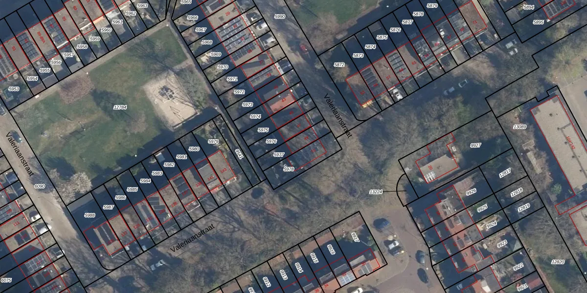 Valeriaanstraat 49 is gelegen op kadastraal perceel SOE00G5977. Deze kadastrale aanduiding is uniek en wordt gebruikt door het Kadaster om eigendomsrechten en andere zakelijke rechten vast te leggen. Het perceel maakt onderdeel uit van de kadastrale gemeente Soest.