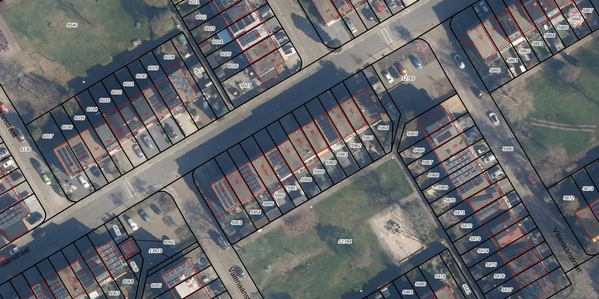 Het perceel waarop Valeriaanstraat 83 staat heeft een oppervlakte van 142 m². Dit is een middelgroot perceel. De perceeloppervlakte wordt geregistreerd door het Kadaster. Gedetailleerde informatie over de maten van dit perceel kunt u vinden in het rapport Kadastrale kaart met maatvoering van Valeriaanstraat 83.
