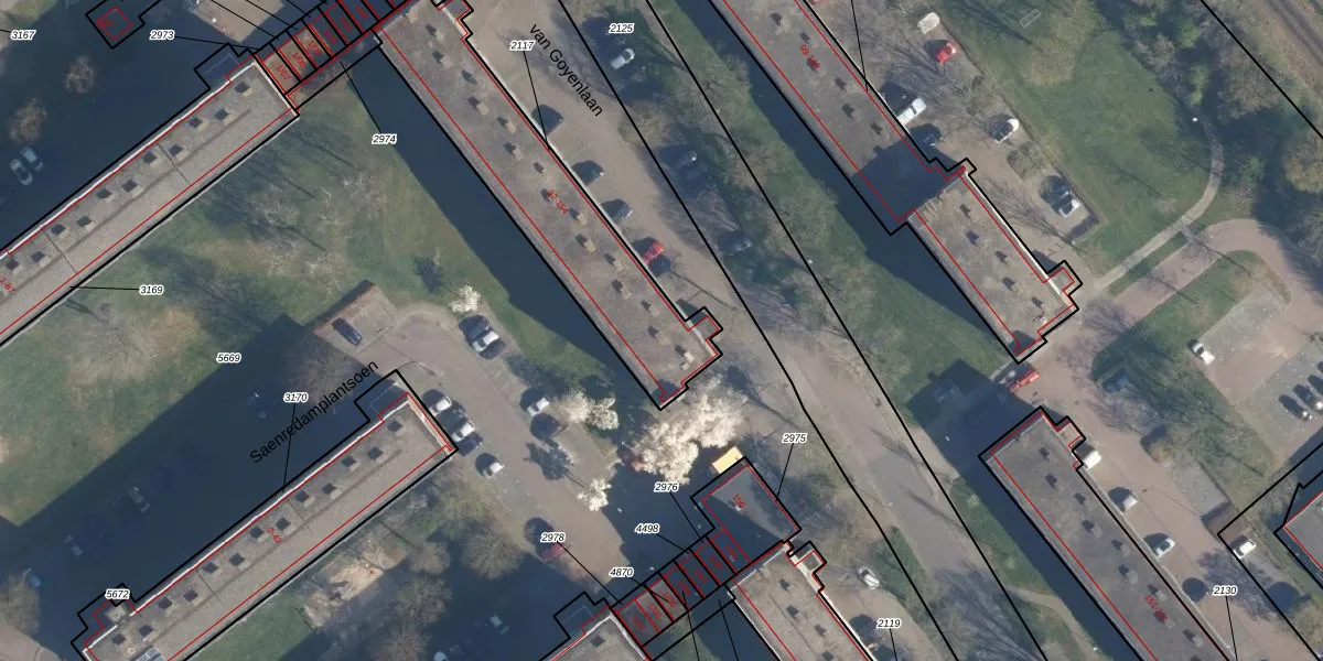 van Goyenlaan 106 is gelegen op kadastraal perceel SOE00K2117. Deze kadastrale aanduiding is uniek en wordt gebruikt door het Kadaster om eigendomsrechten en andere zakelijke rechten vast te leggen. Het perceel maakt onderdeel uit van de kadastrale gemeente Soest.