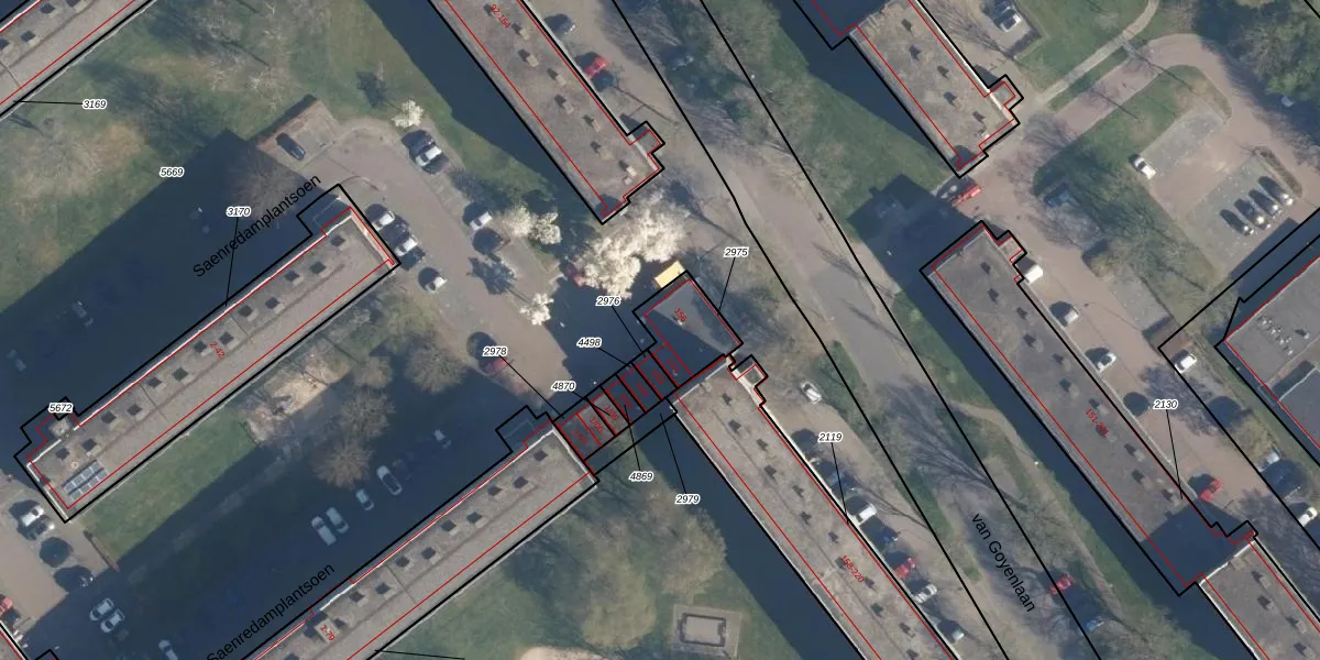 van Goyenlaan 156 is gelegen op kadastraal perceel SOE00K2975. Deze kadastrale aanduiding is uniek en wordt gebruikt door het Kadaster om eigendomsrechten en andere zakelijke rechten vast te leggen. Het perceel maakt onderdeel uit van de kadastrale gemeente Soest.