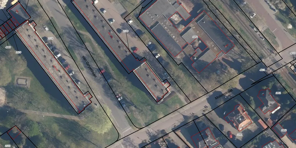 van Goyenlaan 181 is gelegen op kadastraal perceel SOE00K2130. Deze kadastrale aanduiding is uniek en wordt gebruikt door het Kadaster om eigendomsrechten en andere zakelijke rechten vast te leggen. Het perceel maakt onderdeel uit van de kadastrale gemeente Soest.