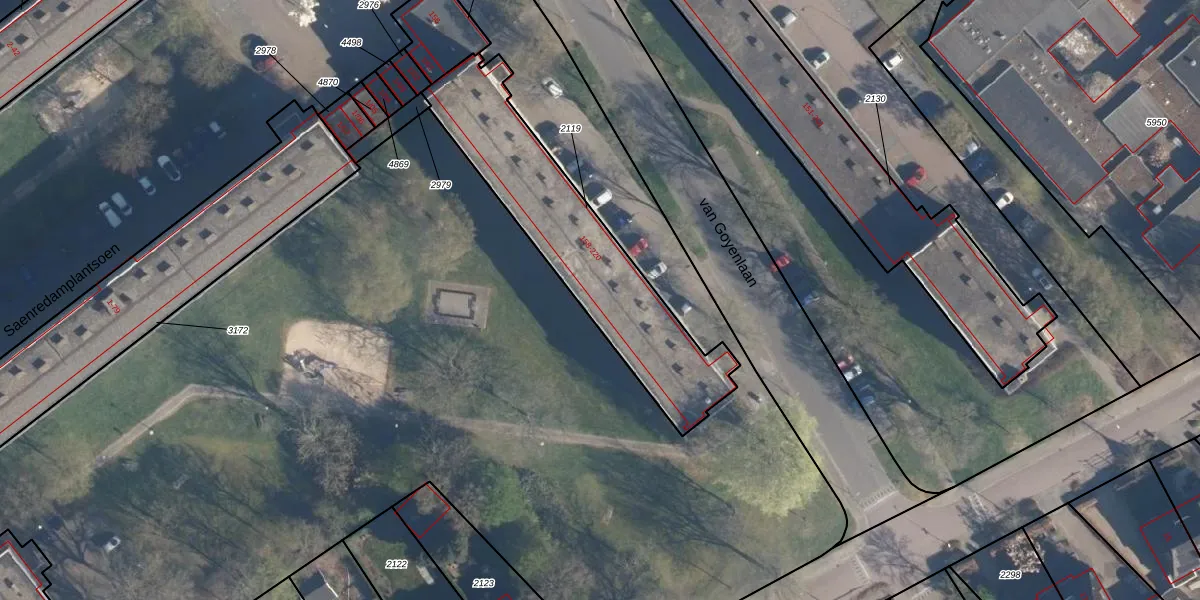van Goyenlaan 216 is gelegen op kadastraal perceel SOE00K2119. Deze kadastrale aanduiding is uniek en wordt gebruikt door het Kadaster om eigendomsrechten en andere zakelijke rechten vast te leggen. Het perceel maakt onderdeel uit van de kadastrale gemeente Soest.
