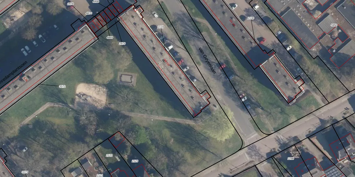 van Goyenlaan 218 is gelegen op kadastraal perceel SOE00K2119. Deze kadastrale aanduiding is uniek en wordt gebruikt door het Kadaster om eigendomsrechten en andere zakelijke rechten vast te leggen. Het perceel maakt onderdeel uit van de kadastrale gemeente Soest.