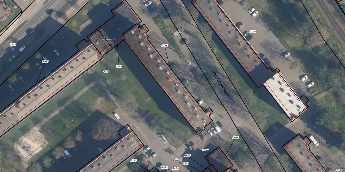 van Goyenlaan 50 is gelegen op kadastraal perceel SOE00K2115. Deze kadastrale aanduiding is uniek en wordt gebruikt door het Kadaster om eigendomsrechten en andere zakelijke rechten vast te leggen. Het perceel maakt onderdeel uit van de kadastrale gemeente Soest.