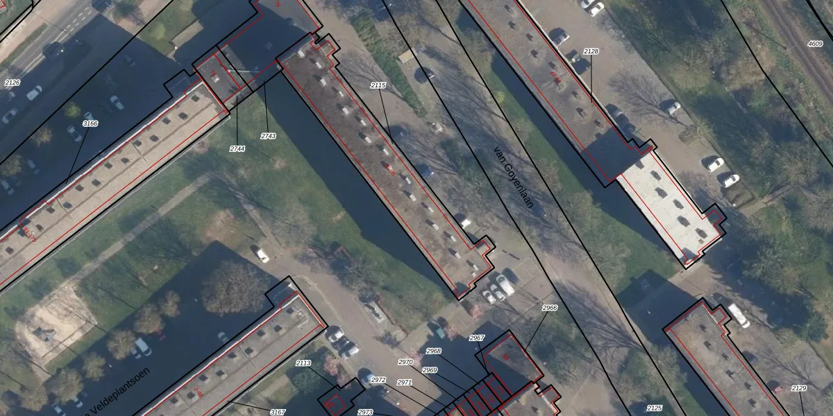 van Goyenlaan 52 is gelegen op kadastraal perceel SOE00K2115. Deze kadastrale aanduiding is uniek en wordt gebruikt door het Kadaster om eigendomsrechten en andere zakelijke rechten vast te leggen. Het perceel maakt onderdeel uit van de kadastrale gemeente Soest.