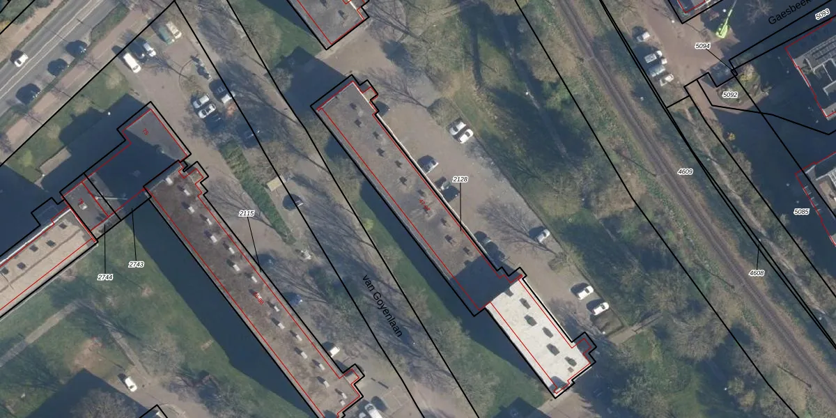 van Goyenlaan 53 is gelegen op kadastraal perceel SOE00K2128. Deze kadastrale aanduiding is uniek en wordt gebruikt door het Kadaster om eigendomsrechten en andere zakelijke rechten vast te leggen. Het perceel maakt onderdeel uit van de kadastrale gemeente Soest.