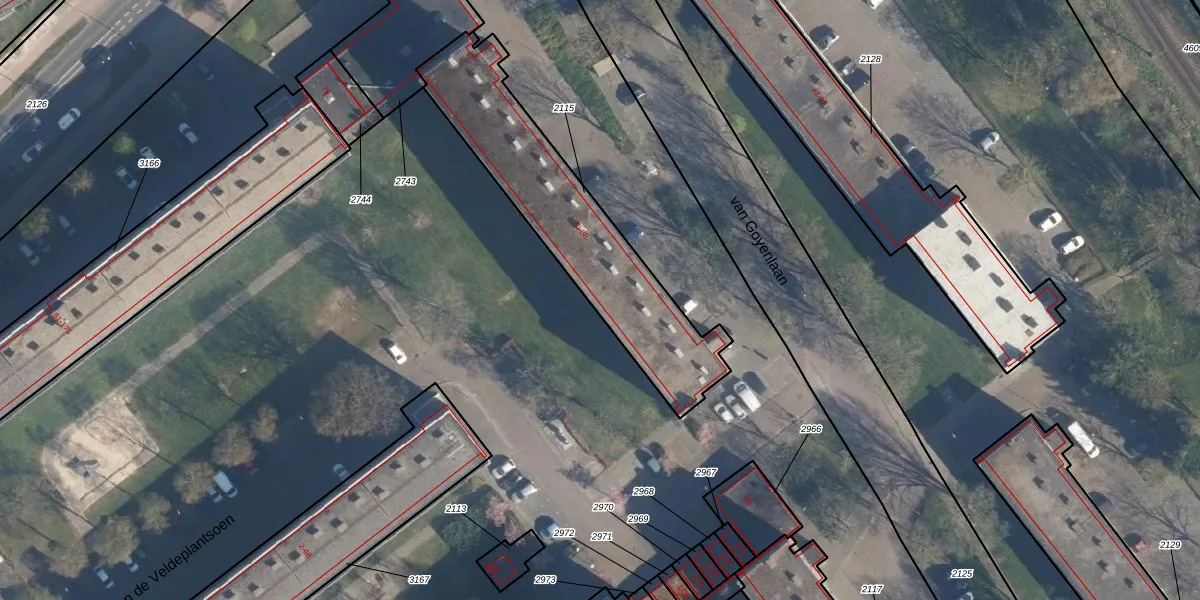 van Goyenlaan 84 is gelegen op kadastraal perceel SOE00K2115. Deze kadastrale aanduiding is uniek en wordt gebruikt door het Kadaster om eigendomsrechten en andere zakelijke rechten vast te leggen. Het perceel maakt onderdeel uit van de kadastrale gemeente Soest.