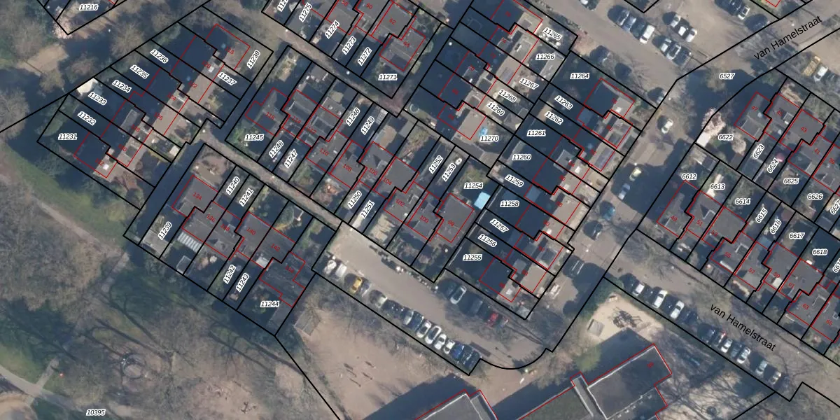 Het perceel waarop van Hamelstraat 100 staat heeft een oppervlakte van 165 m². Dit is een middelgroot perceel. De perceeloppervlakte wordt geregistreerd door het Kadaster. Gedetailleerde informatie over de maten van dit perceel kunt u vinden in het rapport Kadastrale kaart met maatvoering van van Hamelstraat 100.