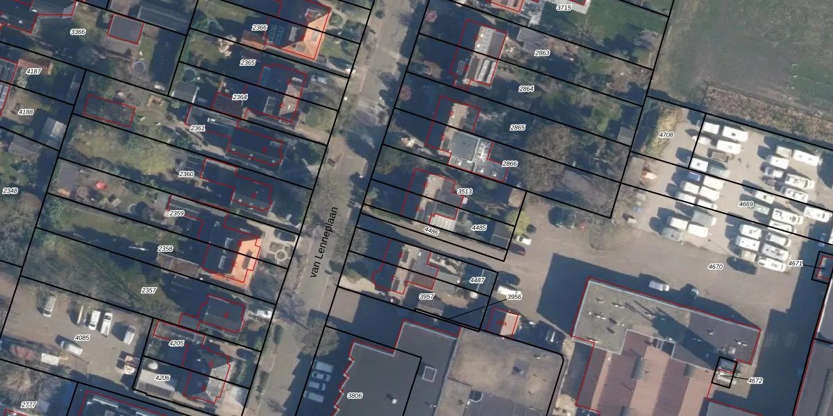 van Lenneplaan 67 is gelegen op kadastraal perceel SOE00C4485. Deze kadastrale aanduiding is uniek en wordt gebruikt door het Kadaster om eigendomsrechten en andere zakelijke rechten vast te leggen. Het perceel maakt onderdeel uit van de kadastrale gemeente Soest.