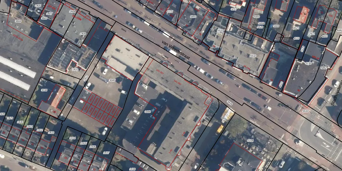 Het perceel waarop van Weedestraat 145 staat heeft een oppervlakte van 2592 m². Dit is een zeer groot perceel. De perceeloppervlakte wordt geregistreerd door het Kadaster. Gedetailleerde informatie over de maten van dit perceel kunt u vinden in het rapport Kadastrale kaart met maatvoering van van Weedestraat 145.