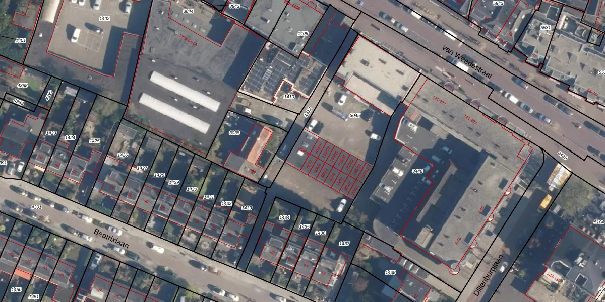 Het perceel waarop van Weedestraat 183-08 staat heeft een oppervlakte van 1555 m². Dit is een zeer groot perceel. De perceeloppervlakte wordt geregistreerd door het Kadaster. Gedetailleerde informatie over de maten van dit perceel kunt u vinden in het rapport Kadastrale kaart met maatvoering van van Weedestraat 183-08.