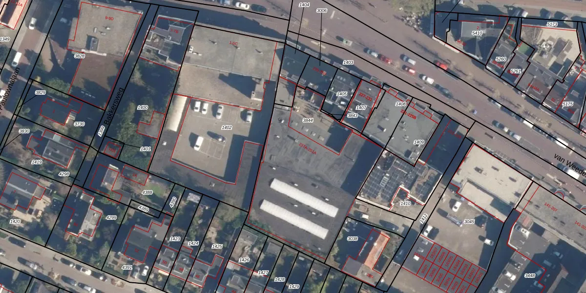 van Weedestraat 251 is gelegen op kadastraal perceel SOE00K3844. Deze kadastrale aanduiding is uniek en wordt gebruikt door het Kadaster om eigendomsrechten en andere zakelijke rechten vast te leggen. Het perceel maakt onderdeel uit van de kadastrale gemeente Soest.